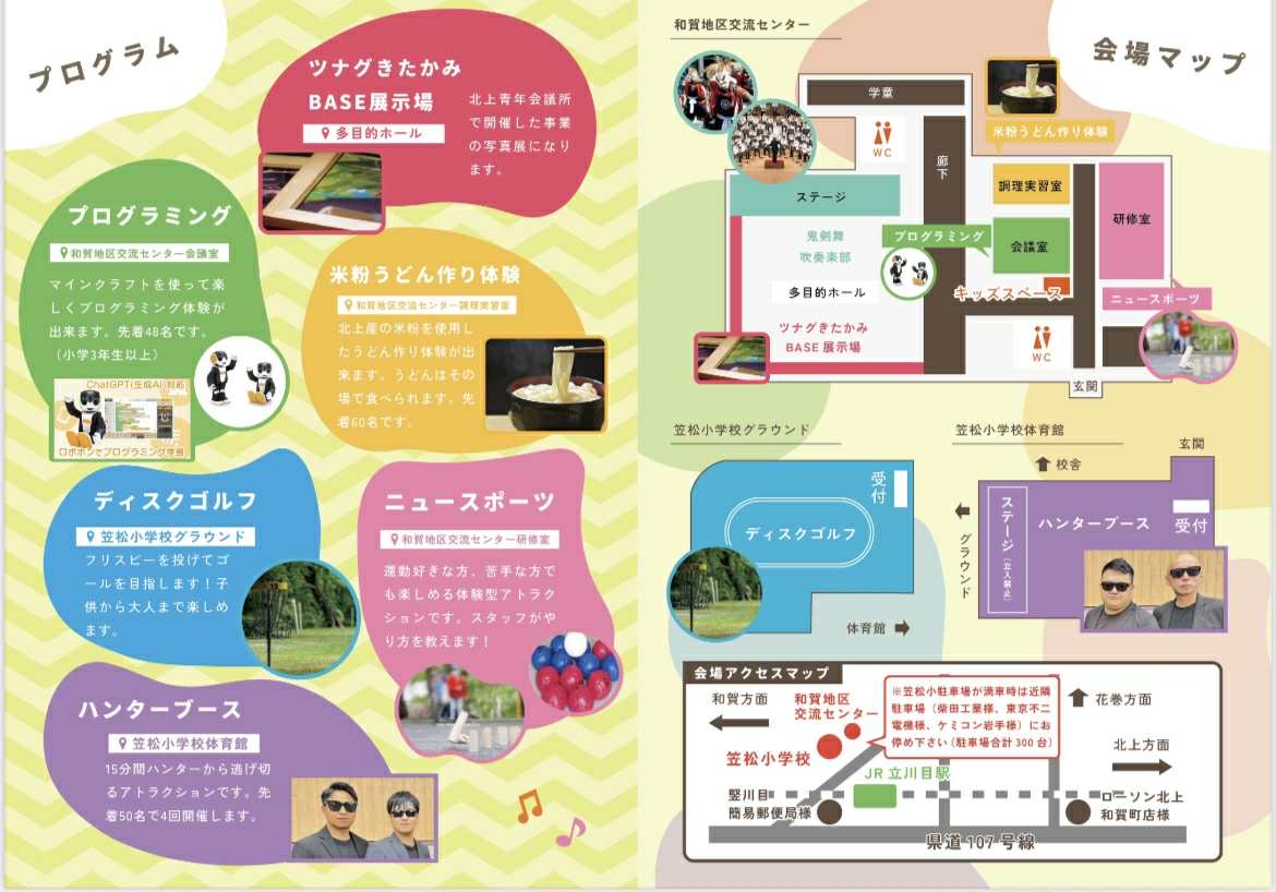 10月26日和賀地区交流センターと北上市立笠松小学校にて、ツナグきたかみBASE文化祭を開催いたします!!